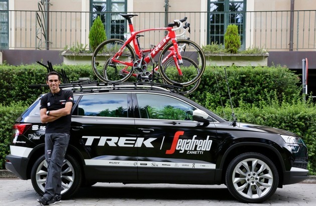 Wenn der SKODA KAROQ am heutigen Dienstag in die Spanienrundfahrt einsteigt, geht die 'Vuelta' in ihre entscheidende Phase. Nach dem Ruhetag am Montag starten die Profis zu einem 40,2 Kilometer langen Einzelzeitfahren. Die Etappe beginnt auf der Rennstrecke des Circuito de Navarra und endet in Logroño. Alberto Contador geht Seite an Seite mit dem neuen SKODA KAROQ auf die Strecke. Der KAROQ, den das Profiteam Trek-Segafredo bei der 'Vuelta' als Servicefahrzeug einsetzt, wurde direkt vom SKODA Stammsitz im tschechischen Mladá Boleslav nach Navarra transportiert. Das Kompakt-SUV ist unter anderem wegen seiner Variabilität und dem überdurchschnittlichen Raumangebot perfekt als Begleitfahrzeug geeignet.