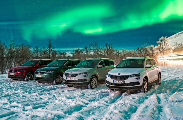 Mit den Wunschzetteln im Gepäck starteten je zwei SKODA KAROQ aus der moldawischen Hauptstadt Chisinau und aus Berlin auf ihre Arktis-Tour. In Warschau trafen sie sich und setzten ihre Tour Richtung Norden fort. Die Route führte die Kompakt-SUVs zum Nordkap, dem nördlichsten Punkt Europas. Anschließend lieferte die KAROQ-Karawane die Wunschzettel im Weihnachtsdorf bei Rovaniemi in der Nähe des Polarkreises ab. Insgesamt legten die vier KAROQ dabei eine Strecke von 23.400 Kilometern zurück.