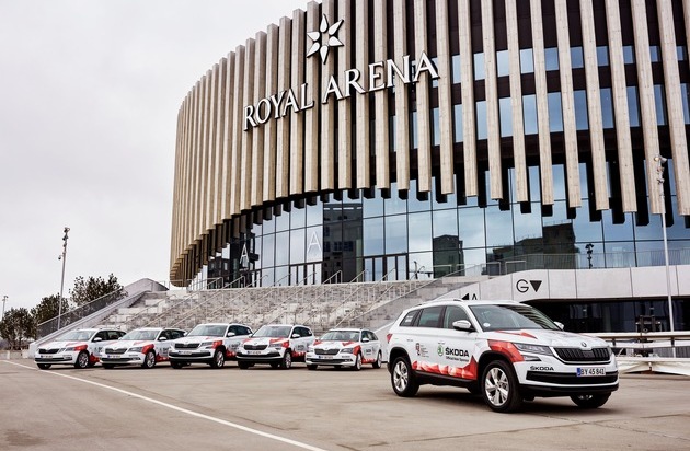 Das SKODA Logo ist bei der IIHF Eishockey-WM deutlich sichtbar vertreten: So ziert es beispielsweise die Banden und die Bullykreise der Spielstätten in der dänischen Hauptstadt Kopenhagen und dem circa 250 Kilometer entfernten Herning. Zudem platziert die tschechische Traditionsmarke drei Modell-Highlights - OCTAVIA COMBI RS, SUPERB und KAROQ - prominent neben der Eisfläche.