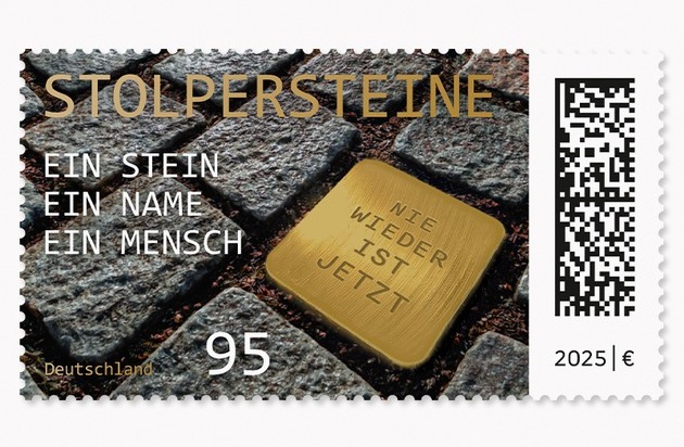 Nikola Hagleitner, Vorständin Post & Paket Deutschland der DHL Group, sagt: „Die Sonderbriefmarke ‚Stolpersteine‘ würdigt eine Initiative, die seit über 30 Jahren Erinnerungen bewahrt - an Menschen, die verfolgt wurden, weil sie jüdisch waren, Sinti und Roma, politisch Andersdenkende oder Bürgerinnen und Bürger, die einfach nicht ins menschenverachtende Weltbild der Nazis passten. Über 122.000 Namen wurden so dem Vergessen entrissen. Wir freuen uns, dass es diese Briefmarke jetzt gibt und wir damit auch postalisch ein klares Zeichen setzen können: für Erinnerungskultur, für Vielfalt, für Toleranz.“