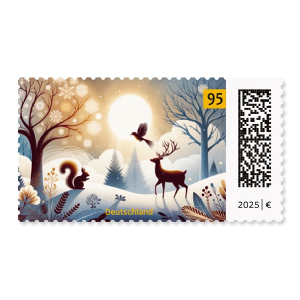 Bonn, 19. Februar 2026: Deutschlands Briefmarkenfreunde haben abgestimmt: Die Briefmarke „Winterlandschaft“ ist die schönste Briefmarke des Jahres 2025. Sie zeigt eine schneebedeckte Landschaft mit stimmungsvollem Licht, Wald und Tieren. „Die ganze Szenerie strahlt Ruhe und Frieden aus. Danach sehnen sich offensichtlich gerade viele Menschen“, sagt Briefmarken-Designer Thomas Steinacker zu seinem Siegermotiv. Dieses hatte zuvor bereits eine Abstimmung unter den Post-Mitarbeitenden für das schönste Briefmarken-Wintermotiv gewonnen. Die 95 Cent-Briefmarke wurde mit KI-Unterstützung gestaltet und kam im November des vergangenen Jahres heraus. Auf Platz 2 landete die Sonderbriefmarke „Margot Friedländer“ und auf Platz 3 das Motiv „Stolpersteine“ (beide aus Dezember 2025). Über 27.000 Teilnehmerinnen und Teilnehmer haben bei der Umfrage der Deutschen Post mitgemacht.