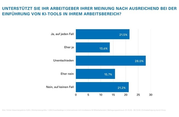 Über die Civey-Umfrage: Online-Umfrage vom 01.10. bis 09.10.2025 unter 1.000 Erwerbstätigen in Unternehmen mit mindestens 50 Beschäftigten.