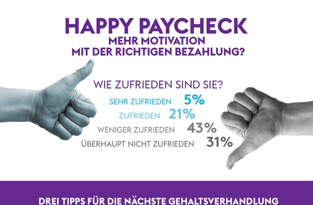 Die Ergebnisse aus Deutschland auf einen Blick Wie zufrieden sind Sie mit Ihrer Bezahlung? (Deutschland) Sehr zufrieden: 5% Zufrieden: 21% Weniger zufrieden: 43% Überhaupt nicht zufrieden: 31%