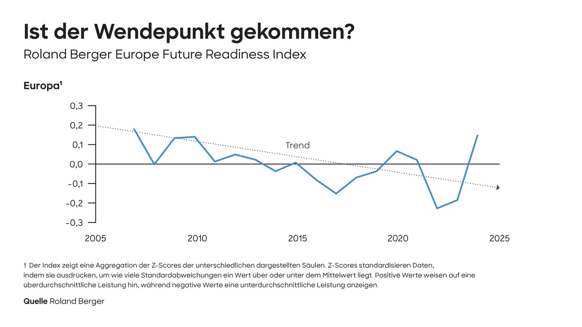 Januar 2026: Strukturelle Erstarrung, regulatorische Komplexität und hoher Kostendruck bremsen seit langem Europas Wettbewerbsfähigkeit. Doch nach jahrelangem Abwärtstrend deutet sich nun erstmals eine leichte Trendumkehr an. Das zeigt der "European Future Readiness Index" der Unternehmensberatung Roland Berger, der heute in Davos vorgestellt worden ist.
