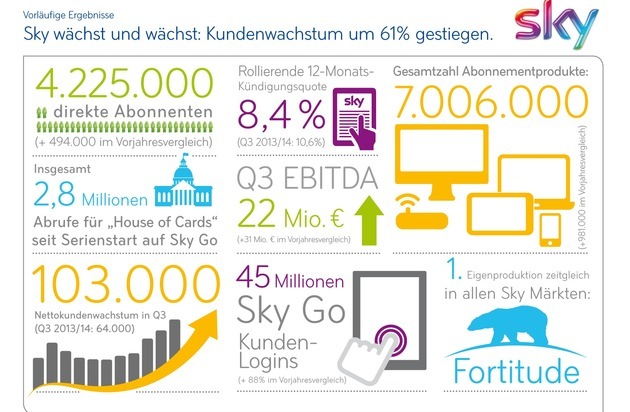 Sky Deutschland: Vorläufiges Ergebnis 3. Quartal 2014/15 Kundenwachstum auf Rekordniveau: Steigerung um 61% im Jahresvergleich