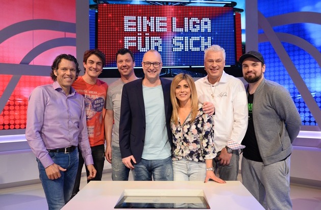 Und das erwartet die Zuschauer außerdem in der siebten Folge "Eine Liga für sich": Zu Beginn dreht sich alles um die teuersten Sportlerhochzeiten von David Beckham, Tiger Woods und Co. Mit einer "geschmackvollen Frage", wie Toni Polster bemerkt, geht es weiter: es sollen die längsten Spielfeldflitzer zugeordnet werden. Buschi stellt dazu fest: "Geschmackvoll, klar. Das zeichnet unsere Sendung doch aus!" Weiter geht es mit dem Erraten der Zweitnamen von Lukas Podolski, André Schürrle und Manuel Neuer. Kurz vor dem großen Finale gilt es dann noch für beide Teams die ersten deutschen Sportlerinnen zu benennen, die es auf das Cover des Playboys geschafft haben. Moderator "Buschi" ist neugierig: "Panagiota, warst du schon mal im Playboy?" Diese antwortet prompt: "Nein, aber es gab da mal eine Anfrage. Ich wollte eine Million Euro dafür. Das war ihnen zu teuer."