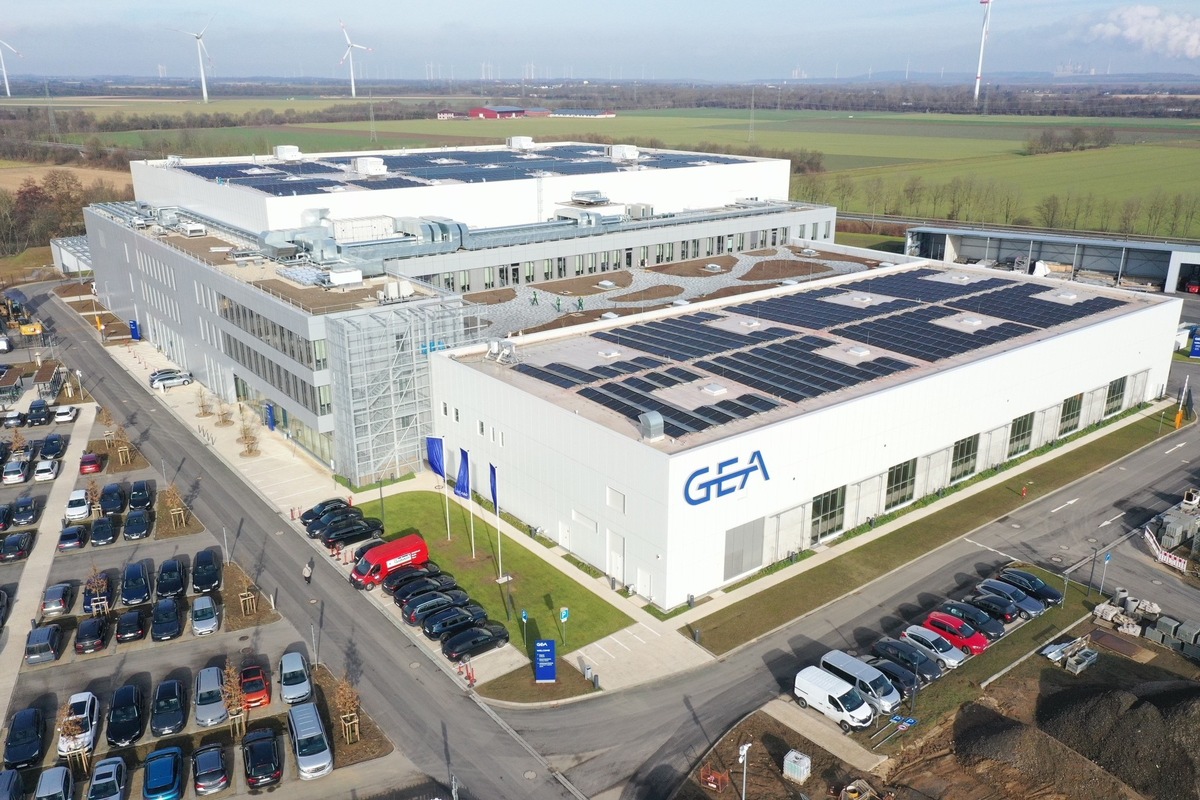 Auf den Dächern der Produktionshallen und Bürogebäude sorgen Photovoltaik-Anlagen und Begrünung für einen CO2-neutralen Betrieb. Mit dem Strom vom Dach betreibt GEA Luft-Wasser-Wärmepumpen für die Gefriertrocknung sowie zum Heizen und Kühlen am Standort. In der Produktion können dadurch bis zu 7.000 Tonnen CO2 eingespart werden. Aus der PV-Anlage speisen sich zudem 30 Ladestationen für E-Autos und Flottenfahrzeuge sowie sechs Stationen für E-Bikes. Möglichst viele Flächen auf dem rund 45.000 Quadratmeter großen Gelände blieben durch Graspflastersteine unversiegelt.