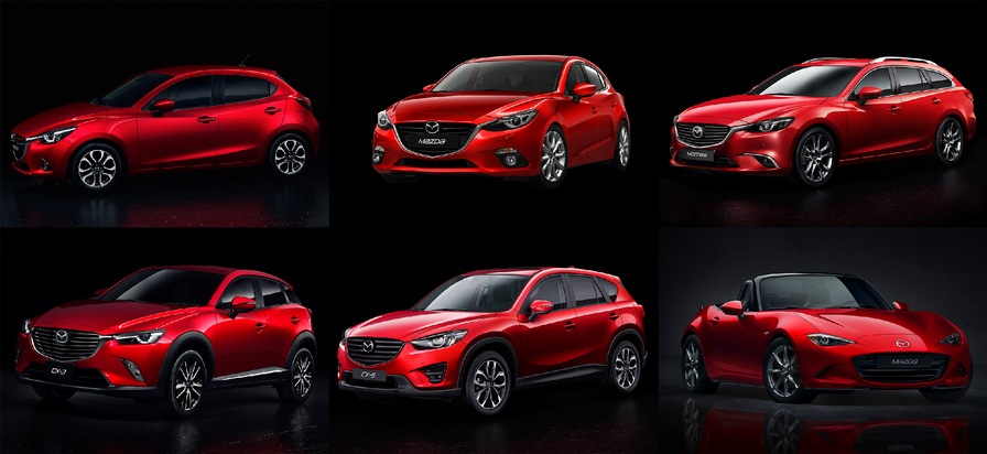 Aber Mazda Fahrer sind eben anders. Nicht nur beim Mazda3 entscheiden sie sich häufig für Rubinrot Metallic, auch beim Mazda6 ist der Anteil mit gut 17 Prozent überdurchschnittlich hoch - und dies in der Mittelklasse, wo generell noch stärker dezentere Farben gewählt werden. Aktuell sind der Mazda3, der Mazda6 und der Mazda CX-5 in Rubinrot Metallic erhältlich. Ab 2015 folgen in dieser Trendfarbe der neue Kleinwagen Mazda2, das neue B-Segment-Crossover Mazda CX-3 und der Kult-Roadster Mazda MX-5.
