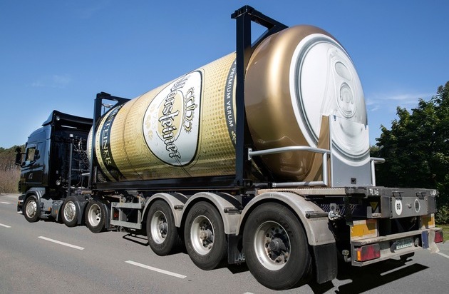 Mit 31.000 Litern Fassungsvermögen rollt die größte, mobile Bierdose auf Deutschlands Straßen