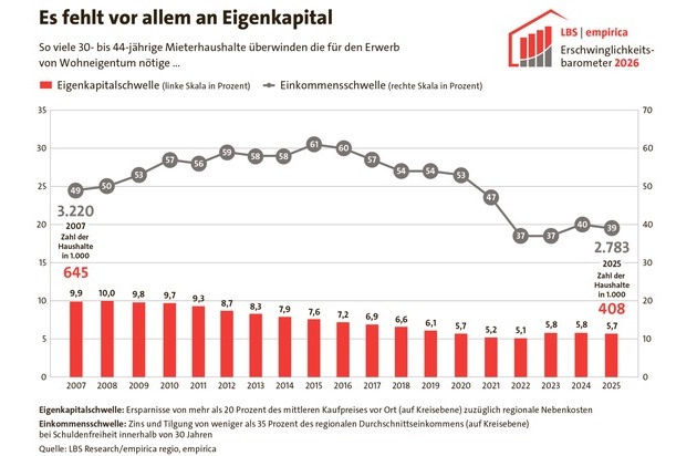 LBS|empirica-Erschwinglichkeitsbarometer 2026: Oft ausreichend Einkommen, aber zu wenige Ersparnisse für die eigenen vier Wände