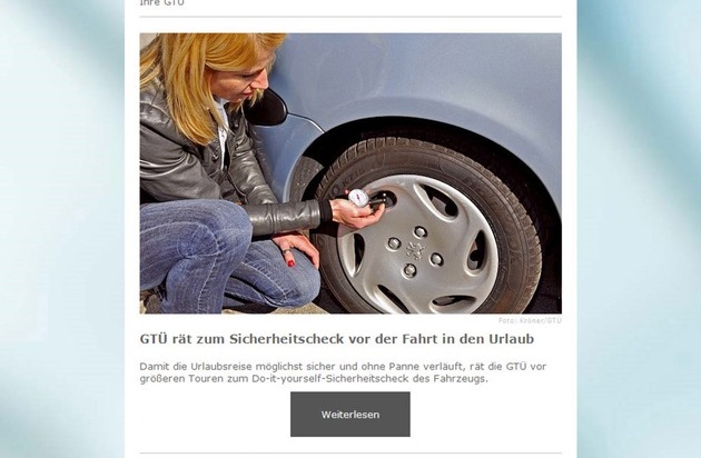 Auf der Homepage der GTÜ können sich Interessierte unter www.gtue.de/newsletter zum regelmäßigen und kostenlosen Bezug des neuen GTÜ-Kfz-Newsletters anmelden.