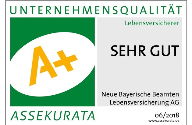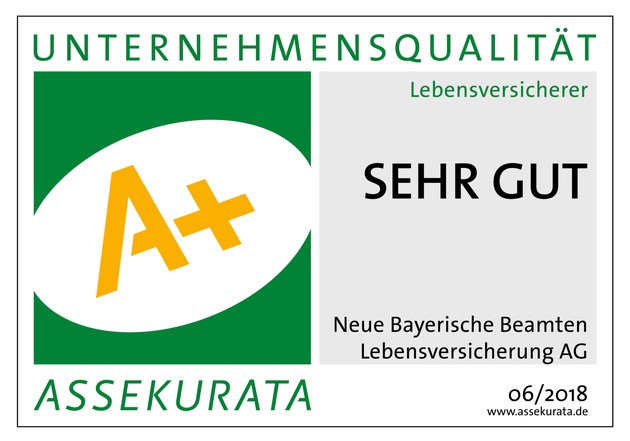 Die Ratingagentur Assekurata erteilt der Versicherungsgruppe die Bayerische erneut die Qualitätsnote A+ ("sehr gut"). Das Rating erhält die Lebensversicherungstochter der Bayerischen, die Neue Bayerische Beamten Lebensversicherung AG. Die Spitzenauszeichnung "sehr gut" bekommt das Unternehmen auch in den Teilkategorien Sicherheit, Erfolg, Kundenorientierung und Wachstum/Attraktivität am Markt.
