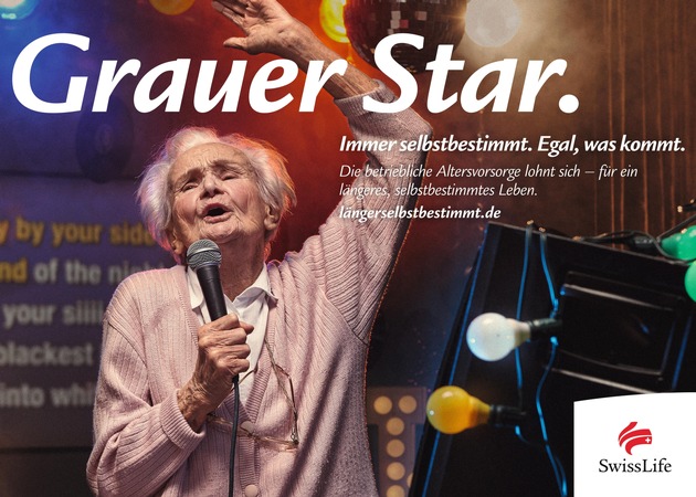 Swiss Life Deutschland launcht ihre Kampagne zum längeren, selbstbestimmten Leben. Mit einem überraschenden und positiven Blick auf das Alter zeigen die Kampagnenmotive, dass ein langes Leben freudige Momente bis ins hohe Alter bereithalten kann. Hohe Aufmerksamkeit ist der Kampagne sicher - dafür sorgt der Widerspruch, die sogenannte Text-Bild-Schere, zwischen einer Krankheitsdiagnose als Headline und dem positiven Bildmotiv, das die Diagnose auf humorvolle Weise auflöst. Mit dabei sind charakterstarke und jung gebliebene ältere Menschen, die Freude am Leben verkörpern. So zeigt die Diagnose "Grauer Star" eine über achtzigjährige Dame, die mit Hingabe einen Song singt und so auf der privaten Wohnzimmerbühne zum Star wird.