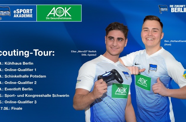 Berlin - Am Samstag, den 7. April 2018, startet die große Scouting-Tour der eSport-Akademie von Hertha BSC in Zusammenarbeit mit der AOK Nordost. FIFA18-Talente aus Berlin, Brandenburg und Mecklenburg-Vorpommern können sich bei Off- und Online-Turnieren für die Plätze in der ersten eSport-Akademie in der Bundesliga empfehlen. Die erste Veranstaltung findet im Kühlhaus Berlin statt.