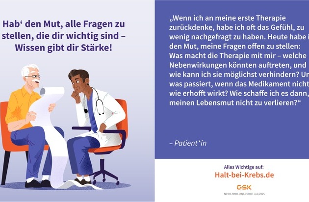 Um Patienten* und ihre Angehörigen - insbesondere in Phasen eines Rückfalls - Informationen und positive Anregungen für den Alltag zu bieten, hat GSK die Initiative "ZURÜCK ZU DIR" entwickelt. Ziel der Initiative ist es, Betroffene darin zu unterstützen, Schritt für Schritt zurück zu sich selbst zu finden. Sie umfasst ein Kartenset bestehend aus 20 Karten, die einfache Tipps und praktische Anregungen von Patienten*, Ärzten* und Psycho-Onkologen* enthalten. Dabei werden Themen wie "Selbstermächtigung", "Resilienz", "Sport und Bewegung" sowie "Sinn und Lebensfreude" aufgegriffen. Das Kartenset gibt es sowohl physisch als auch online unter Halt-bei-Krebs.de.
