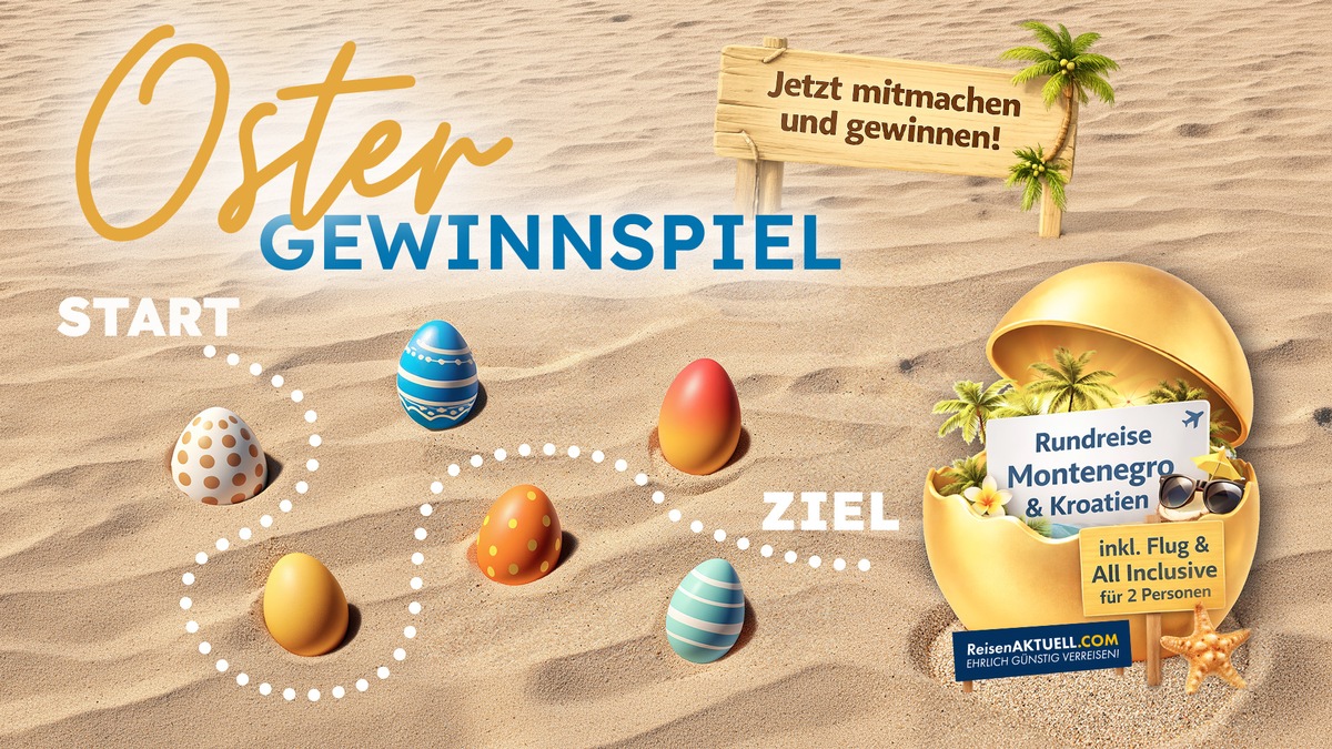 München, 26. März 2026 – Vom Freitag, den 27. März, bis Ostermontag, den 6. April 2026, bietet sonnenklar.TV ein Online-Gewinnspiel auf seiner Webseite an. Teilnehmer haben dabei die Chance auf eine Rundreise für zwei Personen durch Kroatien und Montenegro inklusive Flug und All-Inclusive-Verpflegung. Zusätzlich warten ein Ostsee-Aufenthalt sowie ein sonnenklar.TV Reisegutschein auf die Gewinner.