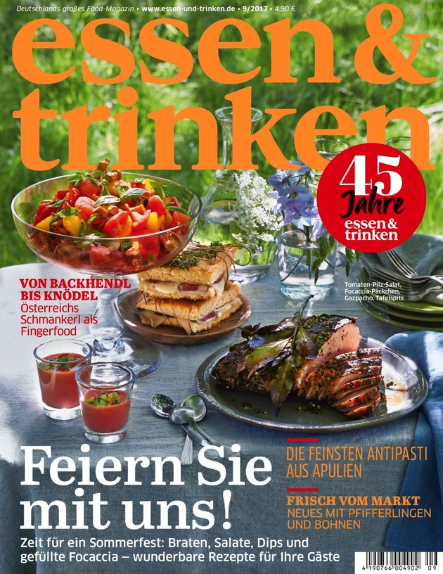 Neue inspirierende Rezepte bietet die ESSEN & TRINKEN Jubiläumsausgabe, die ab 9. August im Handel erhältlich ist.