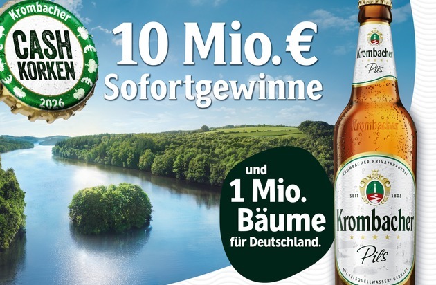 Krombacher Cash-Korken Aktion 2026: 10 Millionen Euro Sofortgewinne und erneut 1 Million Bäume für Deutschland