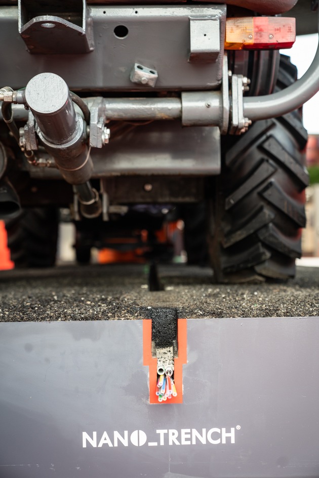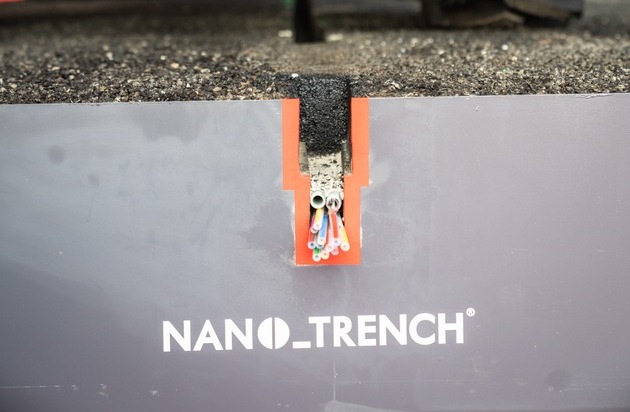 Das Verfahren ist minimal invasiv und ideal geeignet, um Glasfaser unter asphaltierten Untergrund zu bringen. Mit einem feinen Schnitt wird Glasfaser direkt in der Asphaltdecke verlegt, ohne diese zu durchtrennen und damit die Tragfähigkeit zu beeinträchtigen. Damit werden Straßensperrungen auf ein Minimum beschränkt und der öffentliche Raum steht schnell wieder zur Verfügung. Sogar bei kurvigen Straßenverläufen kann Glasfaser mit Nano Trenching schnell und einfach verlegt werden. Davon profitieren alle: Haushalte und Bürger erhalten noch schnelleren Zugang zur Glasfaser-Autobahn. Autofahrer, Fußgänger und Anwohner werden vom Glasfaserausbau weniger im Alltag beeinträchtigt. Denn dauerhafte Baustellen sind mit Nano Trenching nicht mehr nötig.