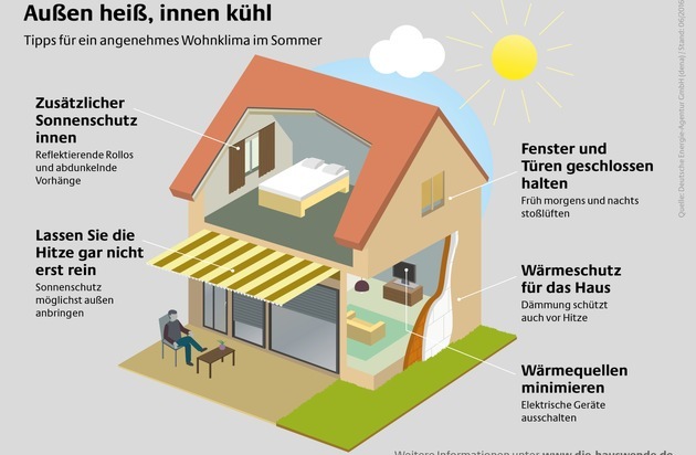 Wenn die Temperaturen im Sommer die 30-Grad-Marke überschreiten, hat man es in den eigenen vier Wänden gern kühl. Gerade in größeren Städten hält sich die Hitze wegen der dichten Bebauung auch nachts in vielen Gebäuden. Klimaanlagen oder Kompakt-Klimageräte ermöglichen zwar eine kurzfristige Abkühlung, durch hohe Energieverbräuche treiben sie aber die Stromrechnung in die Höhe. Christian Stolte, Experte für energieeffiziente Gebäude bei der Deutschen Energie-Agentur (dena), gibt Tipps, wie Mieter und Hauseigentümer im Sommer auch ohne Klimaanlage einen kühlen Kopf bewahren können. Grundsätzlich empfiehlt er: "Am wichtigsten ist, die Hitze gar nicht erst reinzulassen."