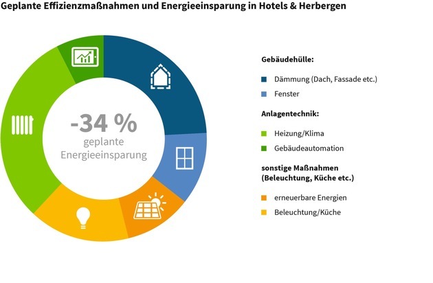 Die 31 teilnehmenden Hotels und Herbergen planen insgesamt Energieeinsparungen von rund 34 Prozent (Wärme und Strom). Dabei ist die Bandbreite erheblich: Sie reicht von Maßnahmen mit einer zehnprozentigen Einsparung bis hin zur Planung eines Plusenergiehotels.