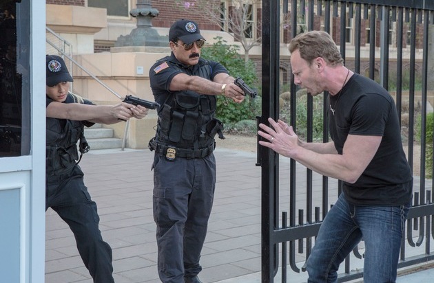 Ian Ziering metzelt wieder reihenweise Haie ab. Beim Dreh zu "Sharknado 3" vor dem Weißen Haus hatte er aber mächtig Muffe.