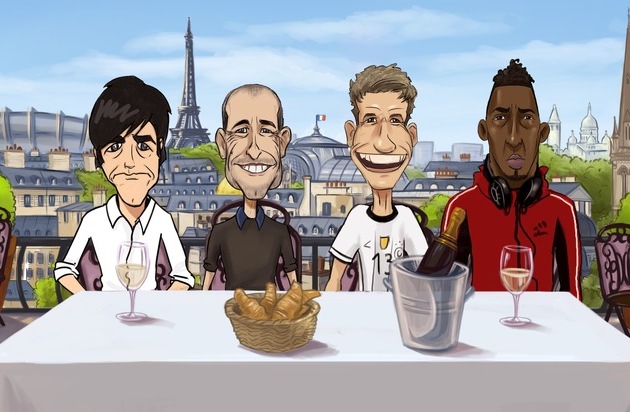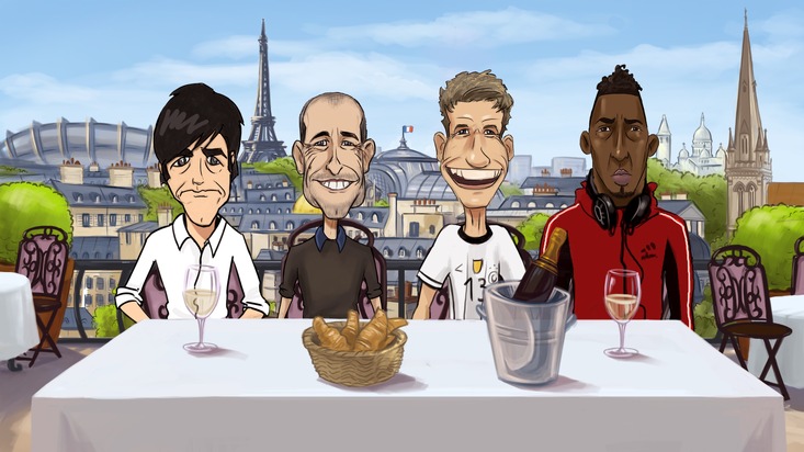 Texter der animierten Fußball-Runde ist Satire-Großmeister Peter Rütten, Ex-Chefautor der Harald Schmidt Show. Die EM-Helden werden von ihm selbst, dem österreichischen Comedian Alex Kristan sowie dem Münchner Radio-Moderator Bene Gutjan gesprochen.