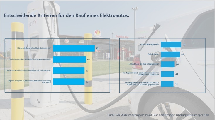 Fahrzeuge mit Elektroantrieb haben weiter an Attraktivität im Markt gewonnen. Zu diesem Ergebnis kommt eine repräsentative Umfrage der Gesellschaft für Konsumforschung (GfK) unter 1.400 Autofahrern, die im Auftrag von Tank & Rast, dem führenden Infrastrukturdienstleister an den deutschen Autobahnen, durchgeführt wurde.