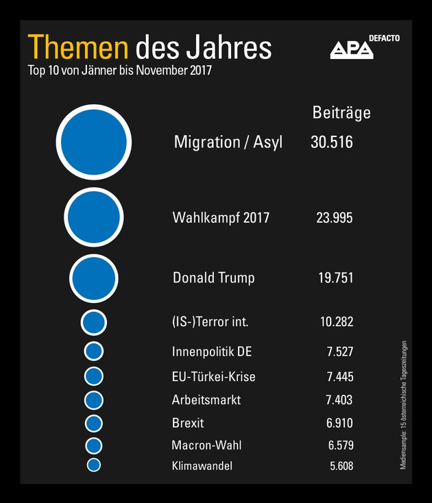 Medienanalyse: Migration, NR-Wahl und Trump waren die Themen 2017 - GRAFIK