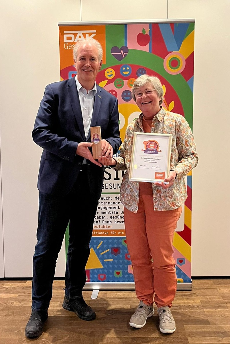 „Gesichter für ein gesundes Miteinander“: Unter diesem Motto haben bundesweit rund 500 Projekte und Einzelpersonen an einem Wettbewerb für besonderes Gesundheits-Engagement teilgenommen. In Baden-Württemberg gewann der gemeinnützige Verein "Daheim in Harpolingen“ mit seinem Projekt „Tischgemeinschaft“. Im Ortsteil von Bad Säckingen kommen Grundschüler und Senioren am Mittag zusammen, werden mit regionalen Zutaten bekocht und profitieren durch das gemeinsame Miteinander: Die Senioren haben Gesellschaft und die Grundschüler werden am Nachmittag bei den Hausaufgaben und beim Spielen betreut. Platz zwei ging an das Projekt „HotzenBlock“, das mit seiner gemeinnützigen Boulderhalle in Waldshut-Tiengen Teilhabe für alle, unabhängig von finanzieller Lage, Herkunft oder Beeinträchtigung, schafft. Den dritten Platz gewann der Kinderbauernhof in Gomaringen, wo Kinder und Jugendliche in herausfordernden Lebenssituationen zur Ruhe kommen können. Baden-Württembergs Ministerpräsident Kretschmann und die DAK-Gesundheit würdigten nun die Gewinnerinnen und Gewinner.