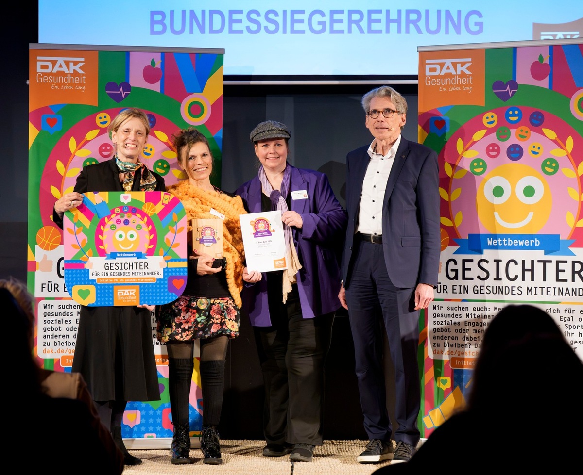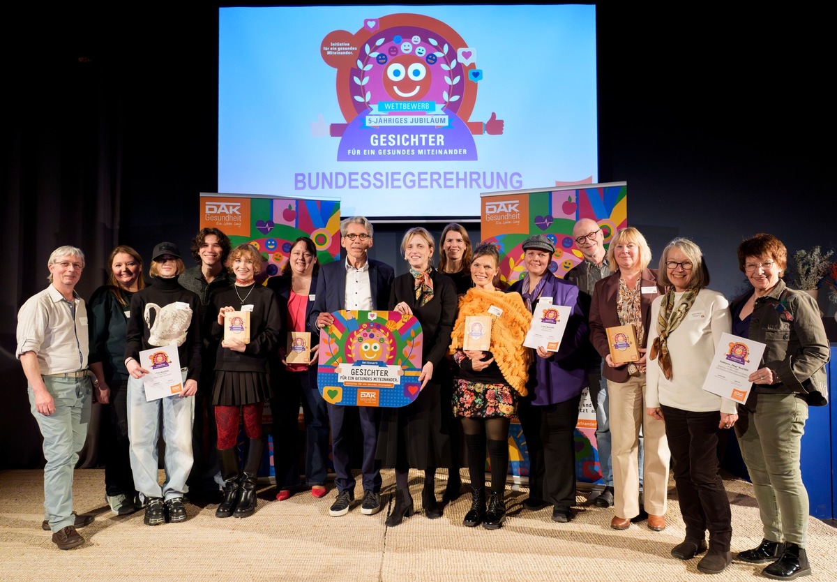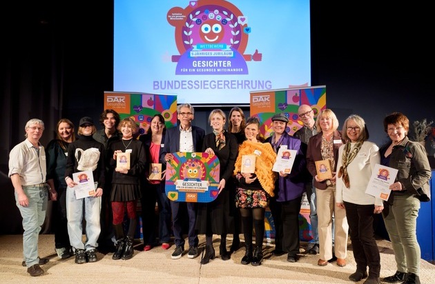 Der Bundessieg beim DAK-Wettbewerb „Gesichter für ein gesundes Miteinander“ ging an Dorothee van den Borre aus Nordrhein-Westfalen. Ihr Projekt „Clowns gegen Einsamkeit“ kümmert sich mit Humor um einsame, ältere Menschen in Pflegeheimen – und stärkt zugleich die Kinder und Jugendlichen selbst. Das Projekt erhält ein Fördergeld von 3.000 Euro. Der mit 1.000 Euro dotierte dritte Platz ging an „Mein Herz lacht e.V.“ nach Rheinland-Pfalz. Das von Sabine Kirchmayer eingereicht wurde. Das Projekt „Mein Herz lacht e. V.“ ist eine Selbsthilfecommunity von und für Eltern mit beeinträchtigten oder chronisch kranken Kindern. Den mit 1.000 Euro dotierten Sonderpreis Pflege gewann die „Alzheimer Gesellschaft“ aus Niedersachsen, die Menschen mit Demenz während Klinikaufenthalten begleitet. Die Fördergelder werden den Gewinnerinnen und Gewinnern zur Weiterentwicklung ihrer Projekte zur Verfügung gestellt.
