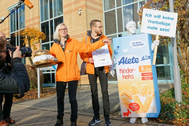 foodwatch-Protestaktion bei Alete: Babynahrungshersteller lehnt Goldenen Windbeutel ab - Verbraucherorganisation fordert: Alete muss Babykeks vom Markt nehmen
