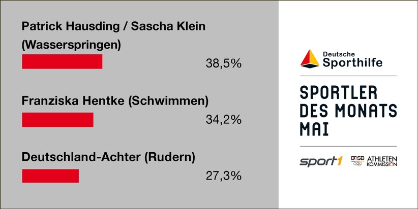 Ergebnis: 1. Patrick Hausding / Sascha Klein (Wasserspringen): 38,5% 2. Franziska Hentke (Schwimmen): 34,2% 3. Deutschland-Achter (Rudern): 27,3%