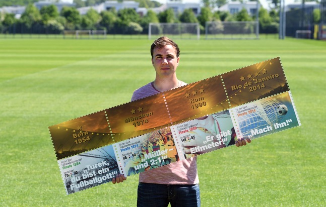 "Mach ihn!": WM-Finaltorschütze Mario Götze präsentiert neue Sportbriefmarken
