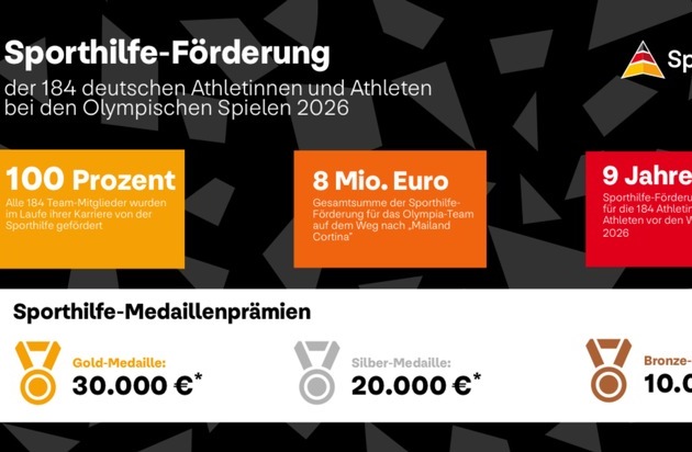 Die Stiftung Deutsche Sporthilfe ist auch bei den Olympischen Winterspielen 2026 in Mailand und Cortina d'Ampezzo einer der wichtigsten Förderpartner der deutschen Athletinnen und Athleten: Alle 184 Team-Mitglieder wurden im Verlauf ihrer Karriere von der Sporthilfe gefördert. Aktuell erhalten 173 der 184 Olympiastarterinnen und -starter (94 Prozent) Unterstützung durch die Stiftung.