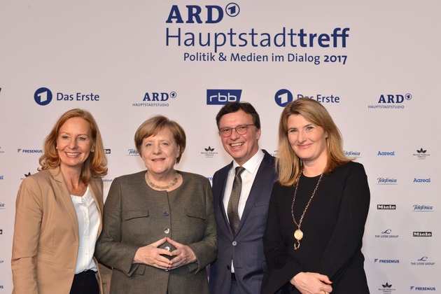 Rund 500 Gäste aus Politik, Kultur, Wirtschaft und Medien folgten am Donnerstag (23.11.2017) der Einladung zum ARD-Hauptstadttreff. Unter ihnen Bundeskanzlerin Angela Merkel, Bundestagspräsident Wolfgang Schäuble sowie die Bundesminister Thomas de Maizière (Inneres) und Heiko Maas (Justiz), die Ministerpräsidentin Annegret Kramp-Karrenbauer (Saarland) und die Ministerpräsidenten Volker Bouffier (Hessen), Bodo Ramelow (Thüringen), Reiner Haseloff (Sachsen-Anhalt) und Armin Laschet (Nordrhein-Westfalen). Gastgeber waren traditionell Patricia Schlesinger, Intendantin des Rundfunk Berlin-Brandenburg (rbb), gemeinsam mit Volker Herres, Programmdirektor Erstes Deutsches Fernsehen, und Tina Hassel, Studioleiterin und Chefredakteurin Fernsehen im ARD-Hauptstadtstudio.