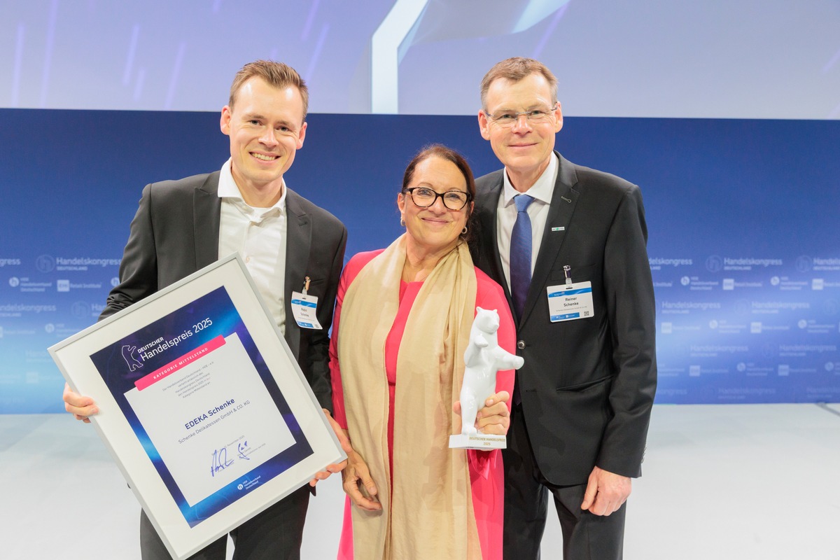 Der selbstständige EDEKA-Kaufmann Reiner Schenke wurde mit seinem Familienunternehmen EDEKA Schenke im Rahmen des gestrigen Deutschen Handelskongresses in Berlin mit dem Deutschen Handelspreis 2025 in der Kategorie "Mittelstand" ausgezeichnet. Die Jury würdigt damit die herausragende Leistung des seit 1934 bestehenden Familienunternehmens, das sich in dritter und vierter Generation zu einem leistungsstarken Handelsunternehmen mit rund 450 Mitarbeitenden und 14 Märkten entwickelt hat. Die Auszeichnung des Handelsverbands Deutschland (HDE) zählt zu den renommiertesten Preisen der Branche und ehrt besondere Erfolge im Handelssektor.