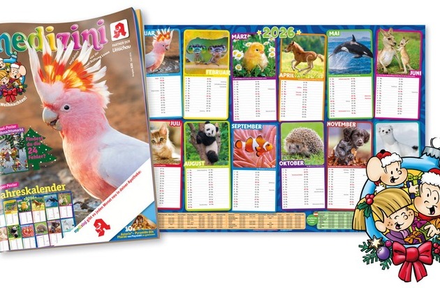 Super-Poster-Jahreskalender 2026, Wimmelspaß auf dem Weihnachtsmarkt und kreative Bastelideen: So vielseitig ist das neue medizini!
