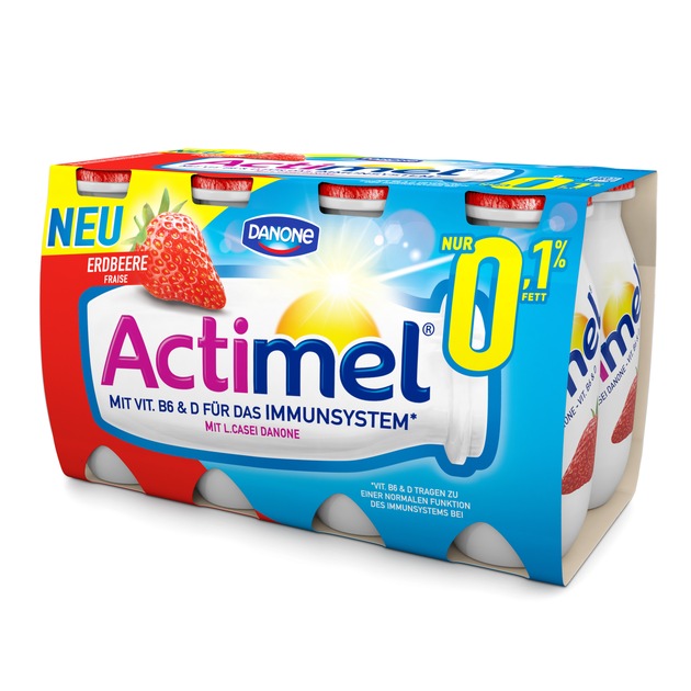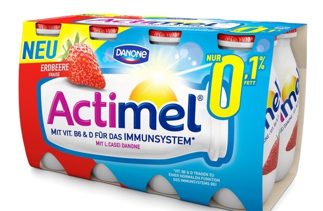 Mit der neuen fettreduzierten Sorte von Actimel kann jeder leicht in den Tag starten. Ab Oktober überzeugt Actimel 0,1 % nun auch mit fruchtigem Erdbeergeschmack.