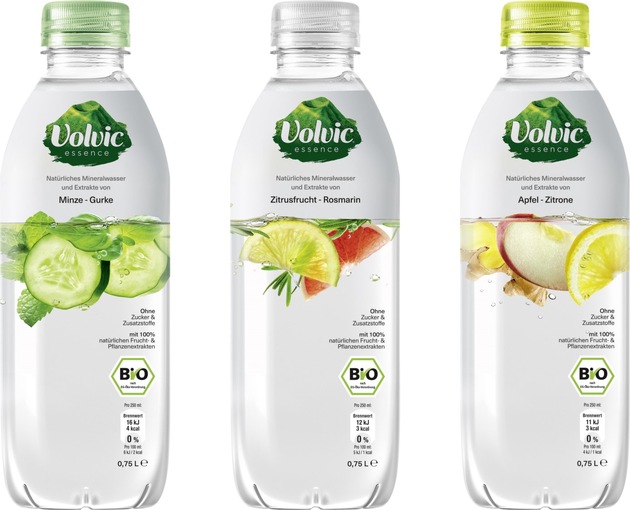 Volvic Essence ist natürliches Volvic Mineralwasser mit Frucht- und Kräuterextrakten und Biozitronensaft. Sonst nichts, kein Schnickschnack, kein Firlefanz, keine Konservierungsstoffe, keine Süßstoffe, kein Zucker, keine Farbstoffe, keine Zusatzstoffe, keine versteckten E-Nummern - versprochen! Volvic Essence ist ab Anfang Mai 2018 in den Sorten Zitrusfrüchte-Rosmarin, Apfel-Zitrone und Minze-Gurke in der Größe 0,75 Liter erhältlich und kostet 1,29 EUR (UVP).