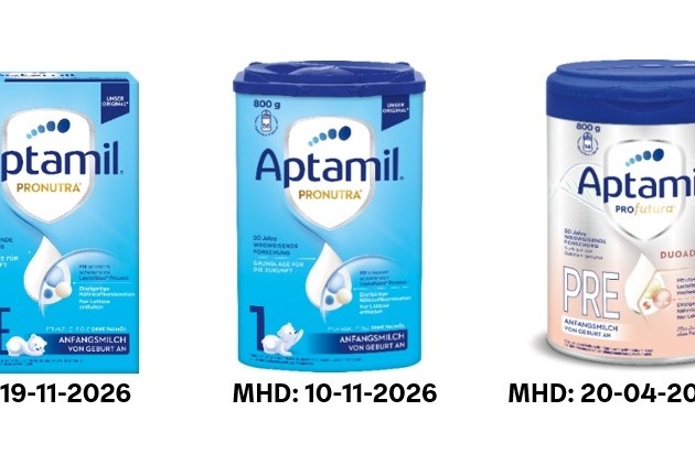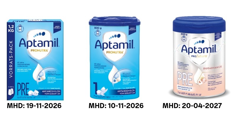 Der in Abstimmung mit den deutschen Behörden durchgeführte Rückruf betrifft ausschließlich die drei oben genannten Produkte mit dem spezifisch aufgeführten Mindesthaltbarkeitsdatum. Keine anderen auf dem deutschen Markt erhältlichen Aptamil Produkte fallen unter diesen Rückruf.