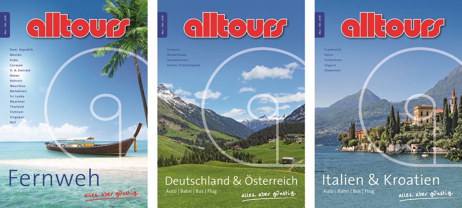 Für die Marke alltours mit ihrem hohen Bekanntheitsgrad (94 Prozent laut GfK) wurden die Kataloge zukunftsorientiert umgestaltet: erstmals ohne separaten Preisteil und mit einem deutlich schärferen Hotelmarkenprofil. Das Katalogprodukt für die Flugpauschal- und Individualreisen hat alltours auf 3.300 Hotels erneut deutlich ausgebaut. Zusätzlich werden 1.000 Hotels von alltours online angeboten. Der Anteil an Exklusivhotels wurde weiter erhöht. In vielen Feriengebieten verbringt mehr als die Hälfte der alltours Gäste ihren Urlaub in einem der Exklusivhäuser. Auf Mallorca sind es sogar über 75 Prozent.