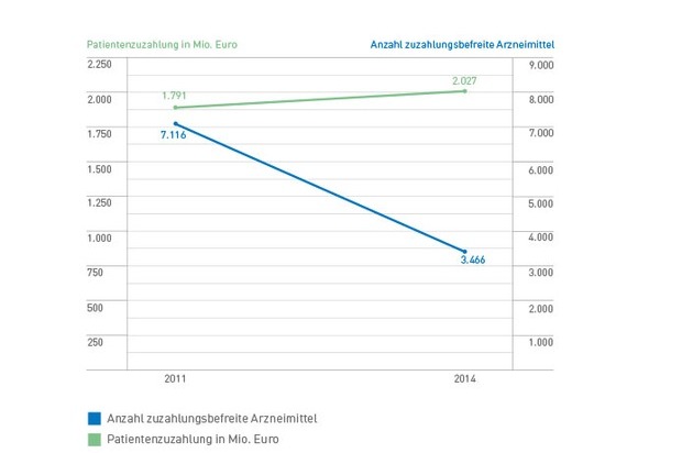 Im Jahr 2014 hat die GKV durch Zuzahlungen für Arzneimittel über 2 Mrd. Euro eingenommen. Das entspricht in etwa dem gesamten Netto-Umsatz der Generikaindustrie, die allerdings dafür 76 % der gesamten Arzneimittelversorgung in Deutschland leisten muss.