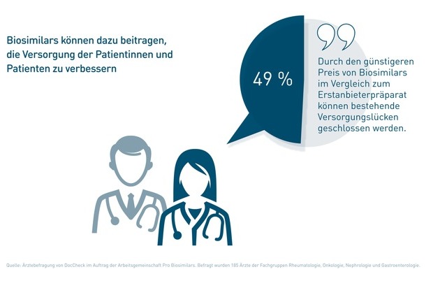 Aus Sicht vieler Ärzte bieten Biosimilars nicht nur erhebliches Einsparpotenzial für das Gesundheitssystem, sondern auch wichtige Vorteile für die Patienten. Zu diesem Ergebnis kommt eine Ärztebefragung, die von der Firma DocCheck im Auftrag der Arbeitsgemeinschaft Pro Biosimilars durchgeführt wurde.(1)