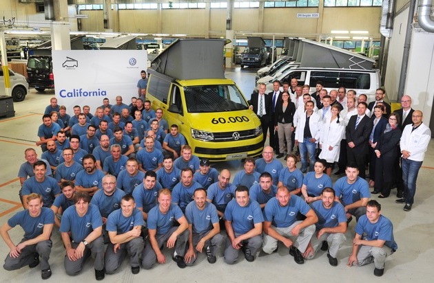 Es ist das einzigartige Kult-Fahrzeug mit eingebautem Urlaubs-Feeling ab Werk: Der California von Volkswagen Nutzfahrzeuge. Jetzt gibt es ein stolzes Jubiläum zu feiern: In der Fertigungsstätte Hannover-Limmer wurde heute der 60.000ste California der T-Baureihe von Volkswagen Nutzfahrzeuge gebaut. Zudem steuert die 'Hotel-California'-Produktion einen neuen Rekord an. Für dieses Jahr ist der Bau von knapp 9.500 dieser vielseitigen Freizeitmobile geplant. Die neuen Modell-Varianten zeigt Volkswagen Nutzfahrzeuge derzeit auf dem Caravan Salon in Düsseldorf (Halle 16, Stand D22) bis zum 6. September auf zwei Etagen und 417 Quadratmetern.