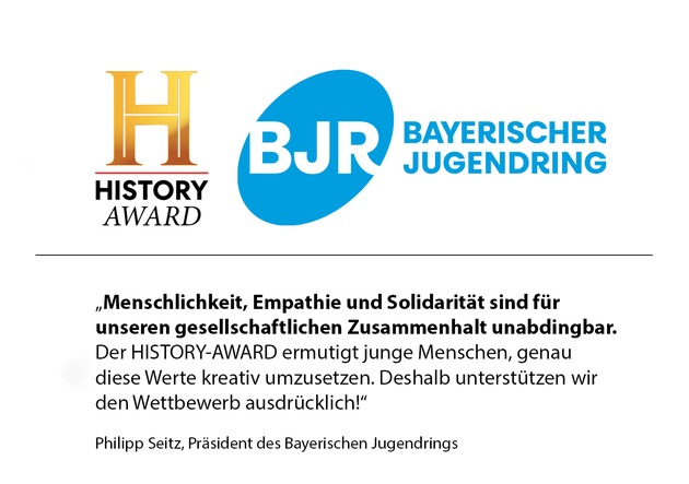 „Menschlichkeit, Empathie und Solidarität sind für unseren gesellschaftlichen Zusammenhalt unabdingbar. Der HISTORY-AWARD ermutigt junge Menschen, genau diese Werte kreativ umzusetzen. Deshalb unterstützen wir den Wettbewerb ausdrücklich!“, so Philipp Seitz, Präsident des BJR.