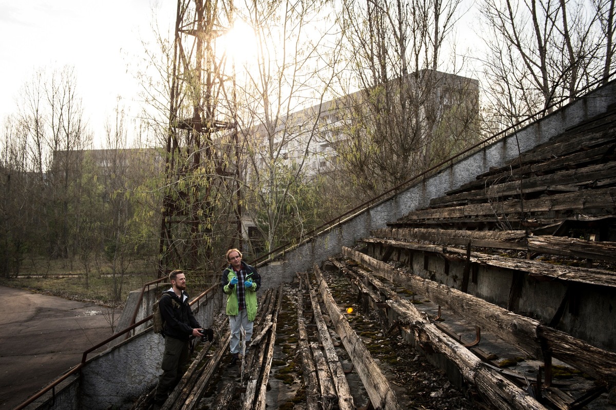 Bei ihrer Entdeckungstour durch die seit Jahrzehnten verlassene Todeszone erforschen sie die ehemalige Arbeiterstadt Prypjat. Ausgerüstet mit Geigerzähler und Atemschutzmaske erkunden die Geschichtsjäger die Überreste der verfallenen Wohnhäuser, des städtischen Fußballstadions sowie die Relikte eines vor sich hin rostenden und makaber anmutenden ehemaligen Freizeitparks.