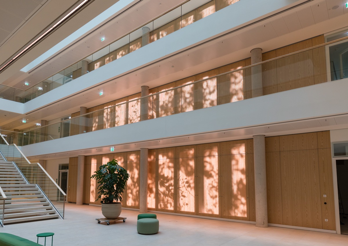 Neben modernen Arbeitsflächen wird die Aufenthaltsqualität für die Mitarbeitenden auch durch begrünte Wände, Sitzmöglichkeiten im Grünen und eine neue Kantine mit moderner Produktionsküche und attraktivem Außenbereich erhöht. Sie weist innen und außen über 400 Sitzplätze auf und bietet den Mitarbeitenden durchgehend leckere und gesunde Mahlzeiten und Snacks sowie eine Salat- und Smoothie-Bar.