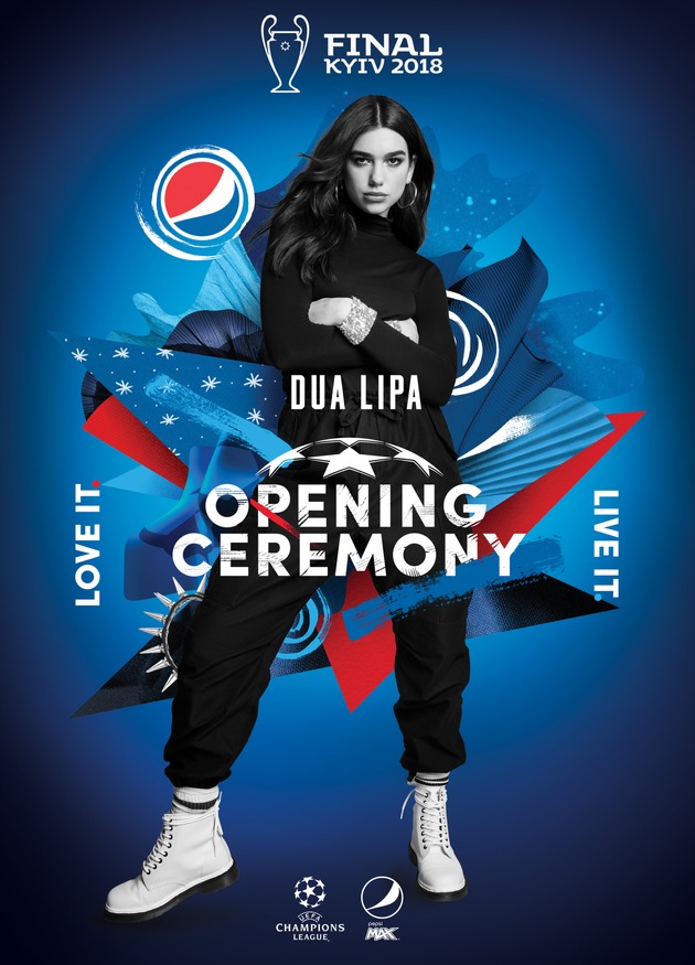 UEFA und Pepsi haben bekanntgegeben, dass Dua Lipa bei der Eröffnungsfeier des UEFA Champions League Finales 2018, präsentiert von Pepsi, als Music Act auftreten wird. Die mit mehreren Musikpreisen ausgezeichnete Sängerin des Songs New Rules wird Fußballfans rund um den Globus am Samstag, 26. Mai, vor dem Anpfiff zum Champions League Finale in Kiew, Ukraine, musikalisch einheizen und sie auf das weltweit meistgeschaute Sportereignis einstimmen. Im dritten Jahr der mit Spannung erwarteten Eröffnungsfeier des UEFA Champions League Finales, präsentiert von Pepsi, wird Dua Lipa eine Bühne betreten, die Musik, Unterhaltung und Sport vereint, um den Fans ein unvergessliches Erlebnis zu bescheren - vor Ort im Stadion wie auch am TV zuhause. Dua Lipa hält den Rekord als jüngste Solokünstlerin, die eine Milliarde YouTube-Klicks erzielen konnte, und ist die derzeit auf Spotify weltweit am häufigsten gestreamte Sängerin. Sie wird Hits aus ihrem letzten Album performen, darunter IDGAF und New Rules, der in 18 Ländern mit Platin ausgezeichnet wurde. Das Album des internationalen Superstars wurde 2,2 Millionen und die Single sogar 17 Millionen Mal verkauft.
