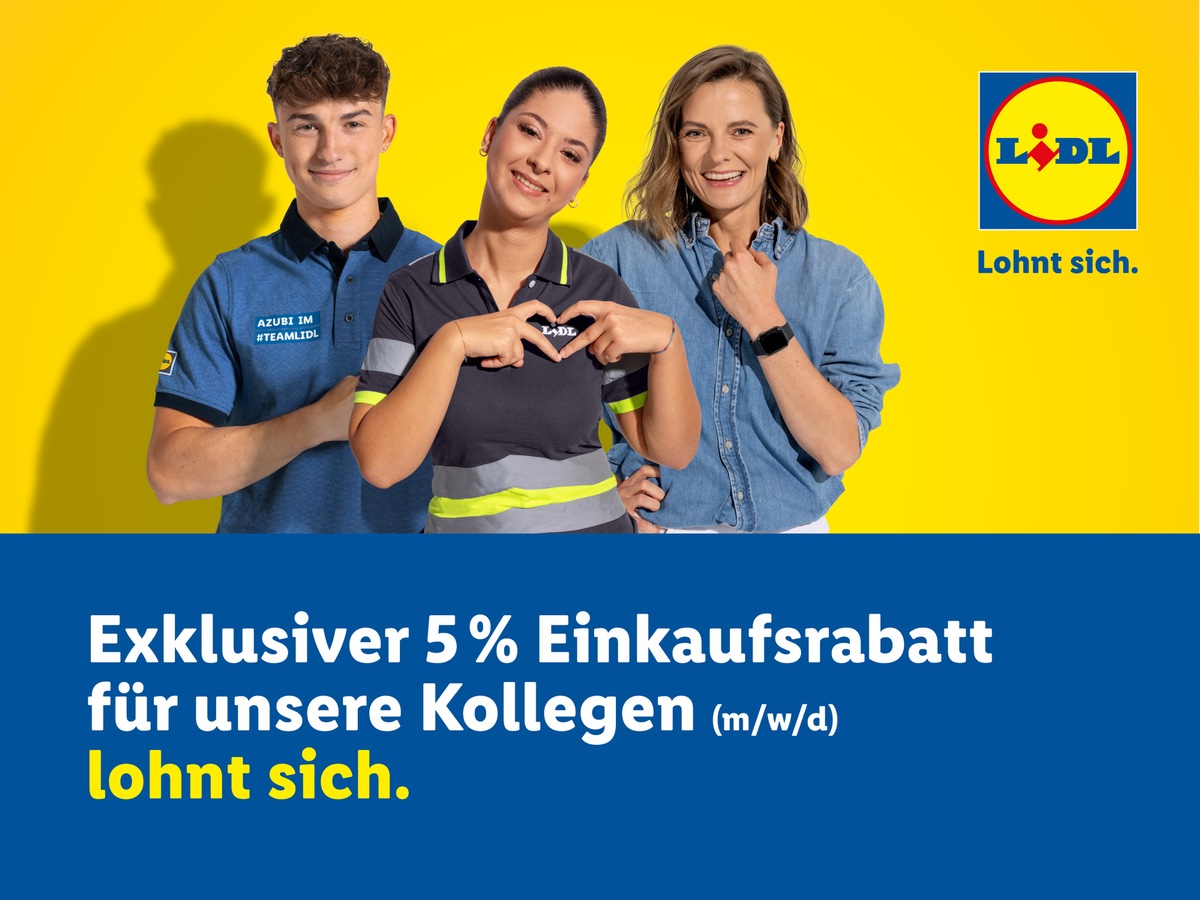 Ab dem ersten April 2026 erhalten alle Mitarbeiter von Lidl in Deutschland einen #teamlidl-Rabatt von fünf Prozent auf ihren täglichen Einkauf (1) (beschränkt auf ein monatliches Einkaufslimit) in allen über 3.250 deutschen Lidl-Filialen.